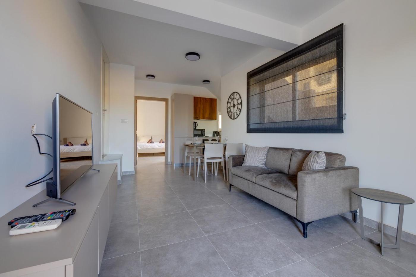 One-Bedroom Apartment. Featuring a private entrance, this air-conditioned apartment comprises 1 living room, 1 separate bedroom and 1 bathroom with a shower and a hairdryer. Meals can be prepared in the kitchen, which comes with a refrigerator, kitchenware, an oven and a microwave. The apartment features tiled floors, a seating area with a flat-screen TV with cable channels, a washing machine, a tea and coffee maker, as well as a dining area. The unit offers 1 bed.