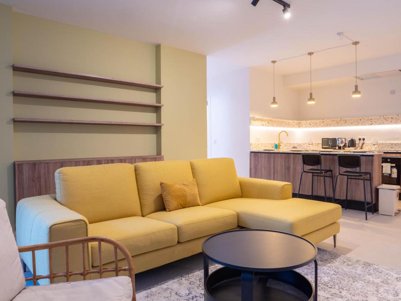 Two-Bedroom Apartment. Featuring a private entrance, this spacious apartment also consists of 2 bedrooms, a seating area and 1 bathroom with a bath and a shower. Guests can make meals in the kitchen that is equipped with a stovetop, a refrigerator, a dishwasher and kitchenware. The air-conditioned apartment provides a flat-screen TV with streaming services, a washing machine, soundproof walls, a tea and coffee maker as well as city views. The unit offers 2 beds. ;