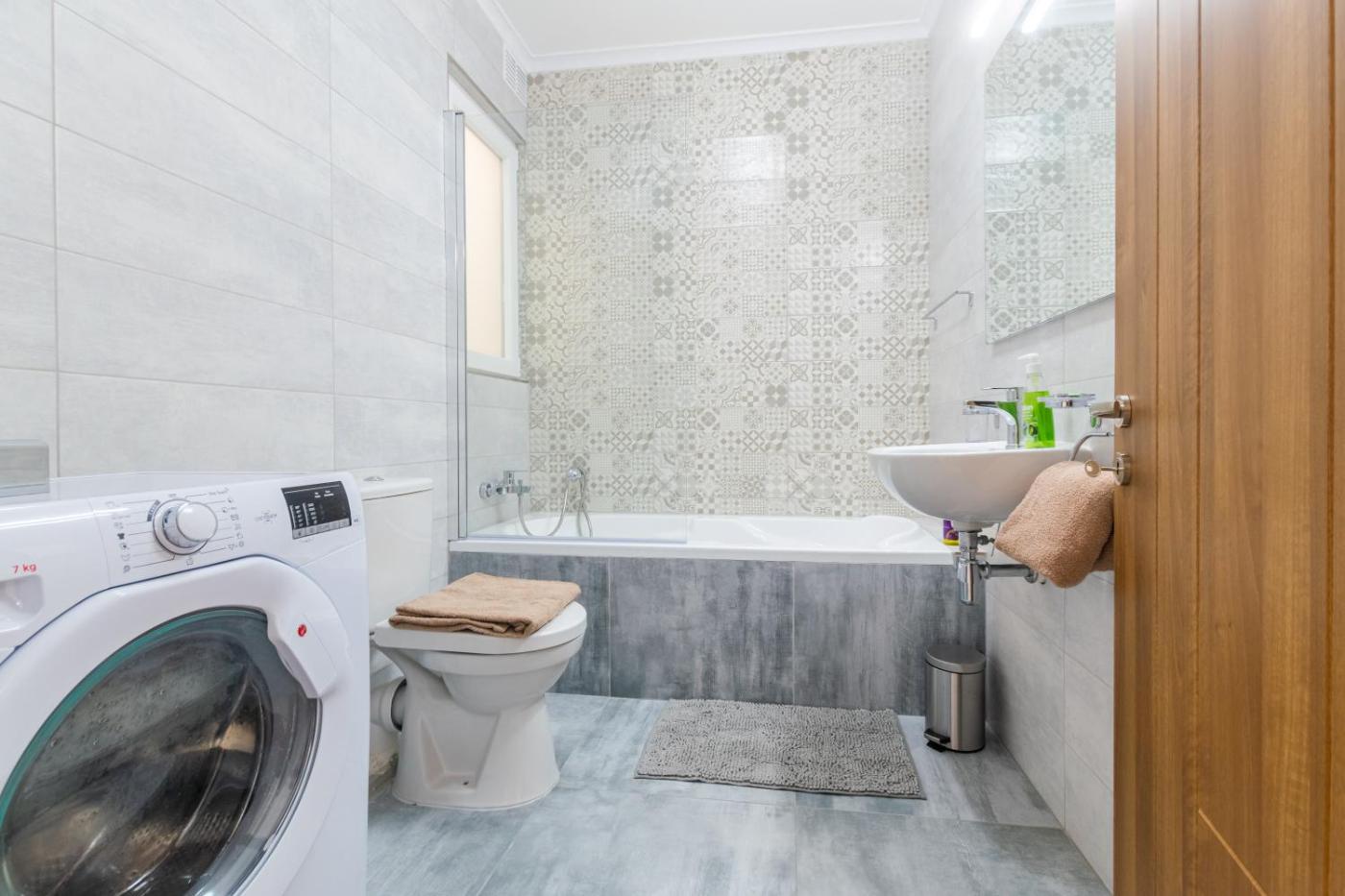 The air-conditioned apartment consists of 3 bedrooms, a living room, a fully equipped kitchen with an oven and a kettle, and 2 bathrooms with a shower and a hair dryer. Towels and bed linen are available in the apartment. The accommodation is non-smoking.