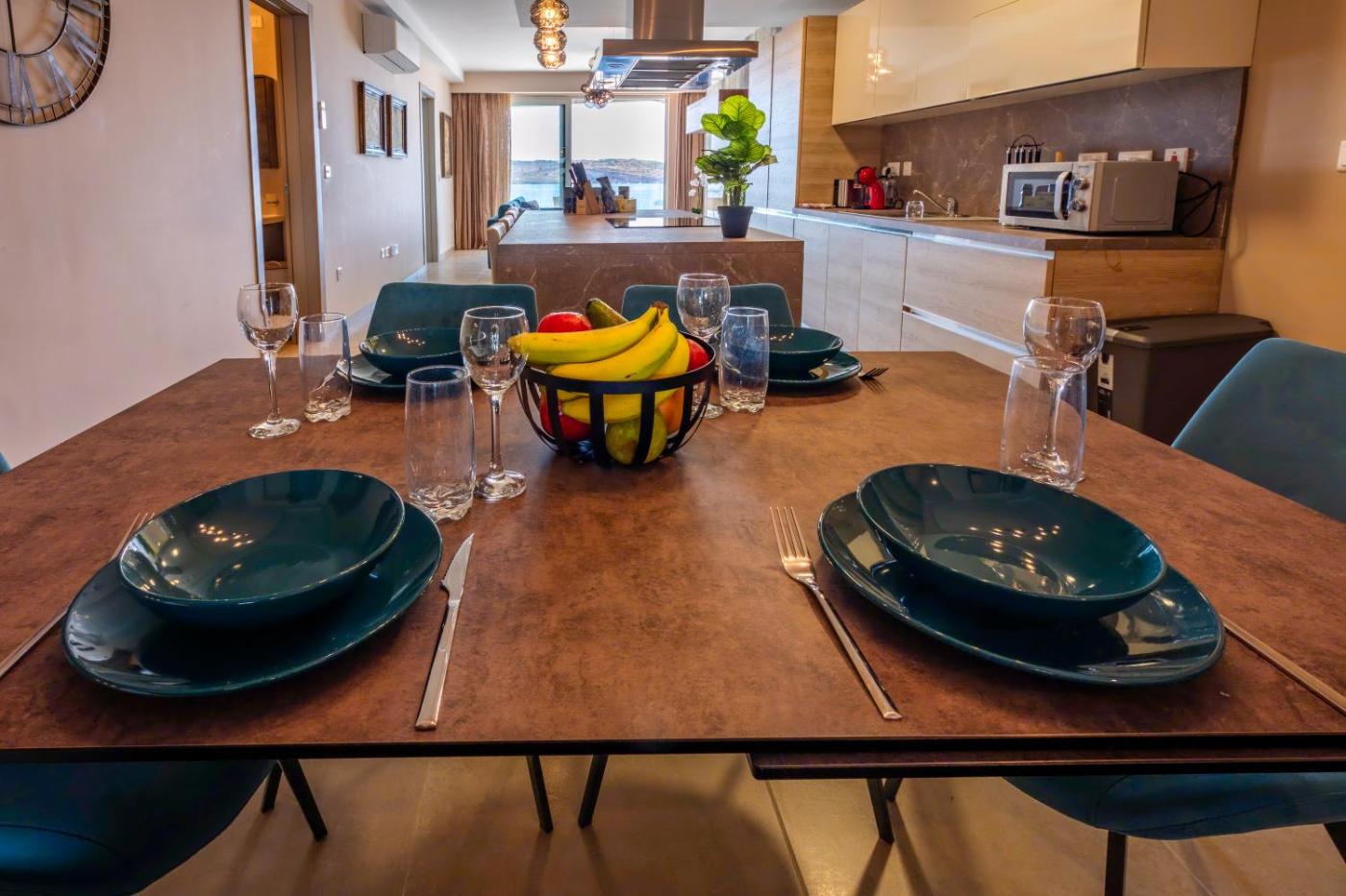 Two-Bedroom Apartment. Boasting 2 bedrooms and 2 bathrooms with a bath, this spacious apartment has a well-fitted kitchen and a terrace. Guests can make meals in the kitchen that features a dishwasher, kitchenware, an oven and a microwave. The air-conditioned apartment features a flat-screen TV, a washing machine, a coffee machine, a dining area as well as sea views. The unit offers 2 beds.