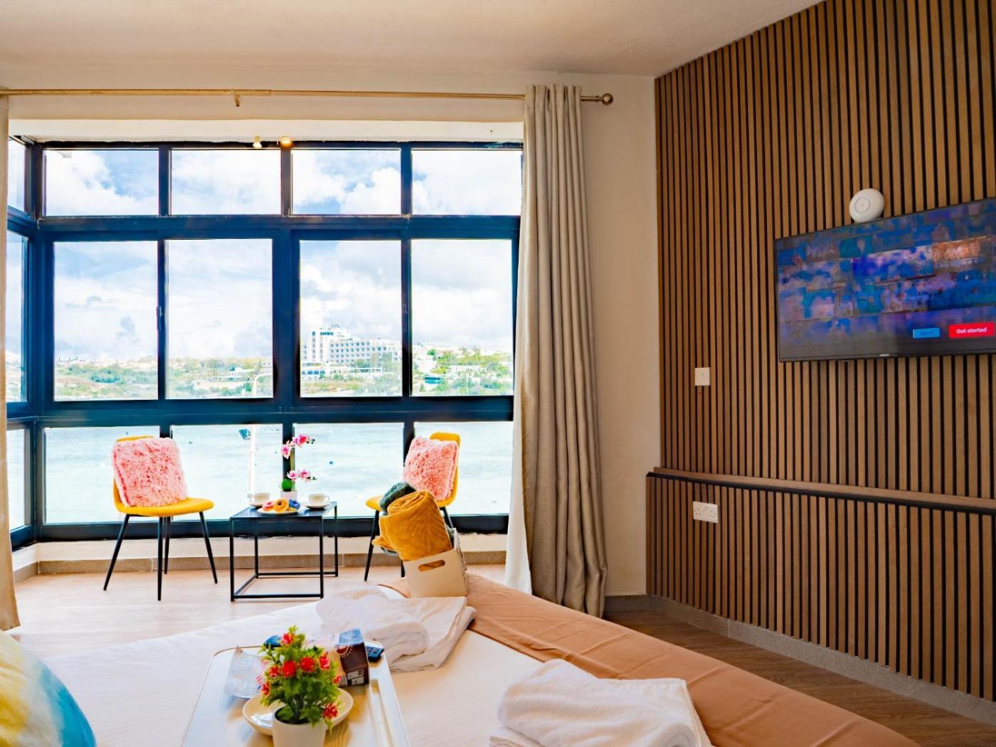 1.1 km from Bugibba Perched Beach, Shoreline Hideaway - Cross Over to the Beach! is a recently renovated property located in St Pauls Bay and provides air-conditioned rooms with free WiFi and parking on-site. This beachfront property offers access to a balcony. Guests can enjoy mountain views.